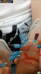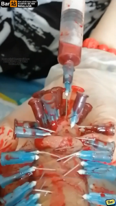 全网独家 国内 狱凤凰 裸足 穿刺 长针 血腥 注射器 把整个鸡巴扎成刺猬 龟头上几乎被扎满 血淋淋的 女王没玩够用用注射器穿刺抽了一大管血 中间男奴太疼女王就让他摸一摸裸脚安慰 全程语言 视频已绝版 推荐