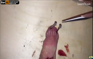 全网独家 中文字幕 铁钉 穿刺 血腥 铁锤 医疗调教 用锤子把很粗的铁钉钉在龟头里面 拔钉的时候流了很多血 女王很残忍不管男奴的惨叫 视频已绝版 推荐