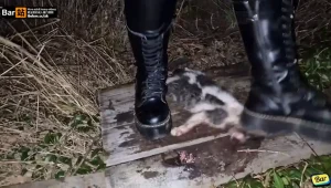 国外女王 户外 皮鞋 踩猫 踩碎 02